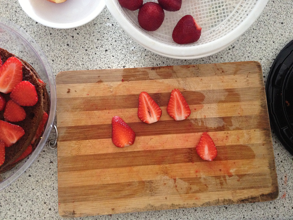 따 온 딸기로 케이크, 딸기잼 만듦